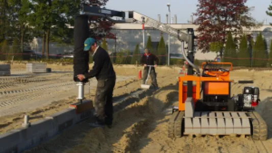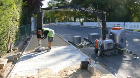 The PaveJet S24 installs pavers and slabs extremely fast and precise with a perfect joint pattern.